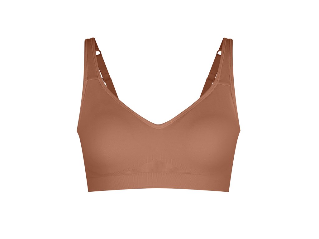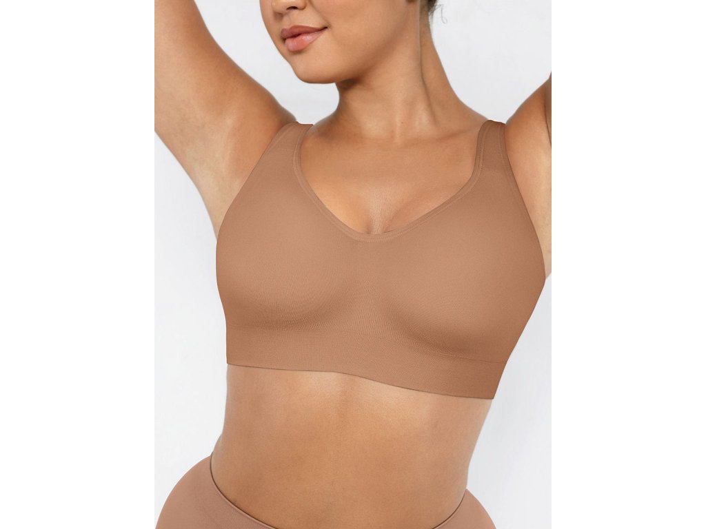 Bezešvá formující podprsenka bez kostic se širokými ramínky, SVĚTLE HNĚDÁ