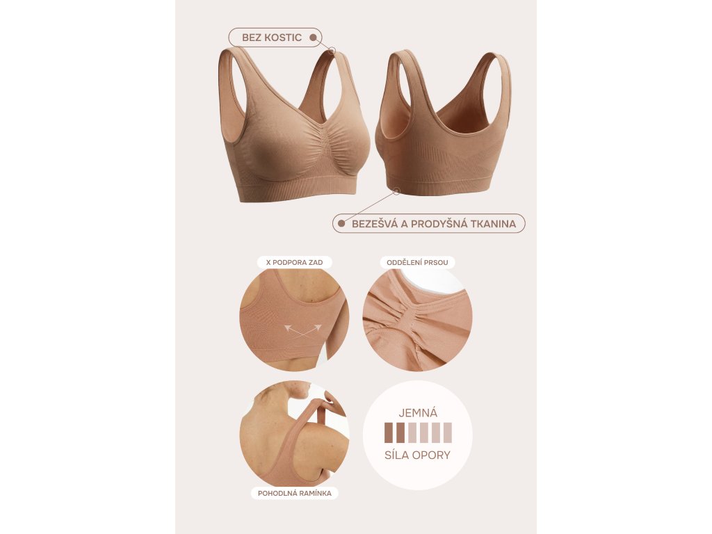 Jemně tvarující bezešvá podprsenka bez kostic, TMAVÁ NUDE