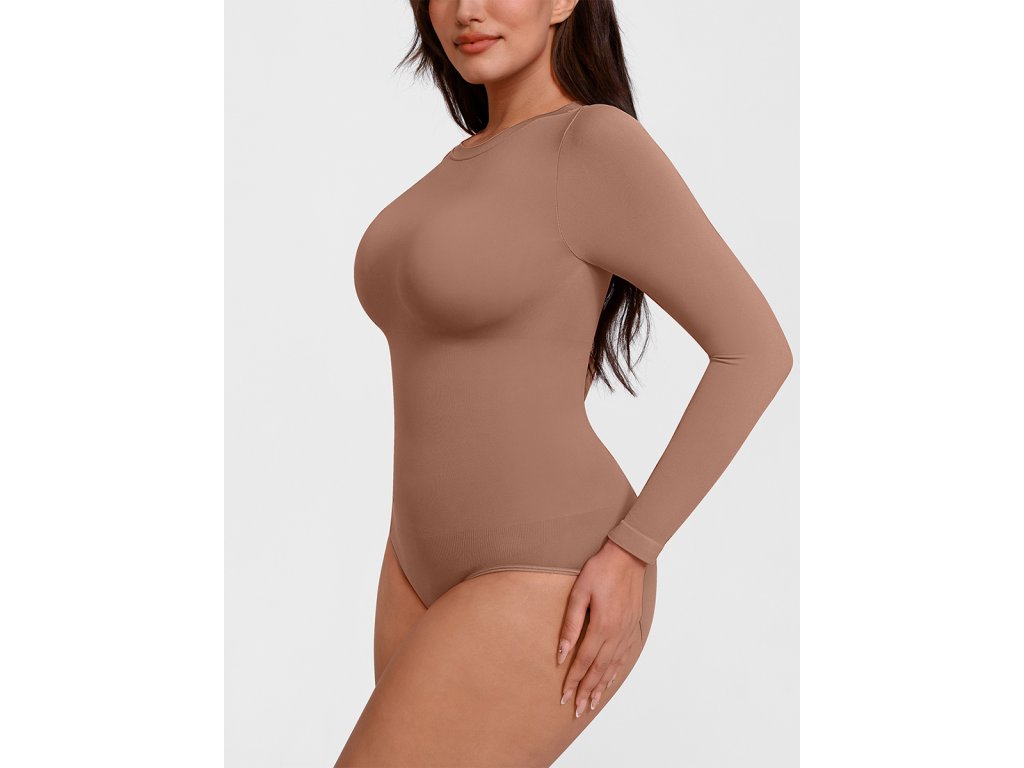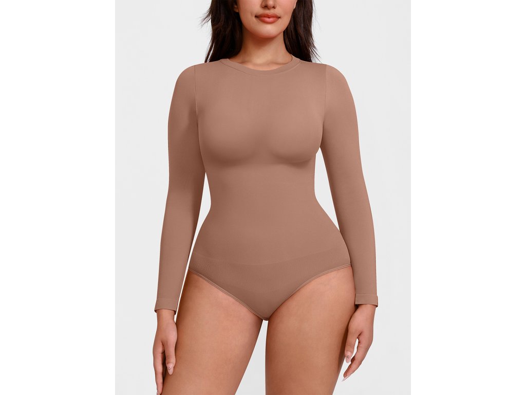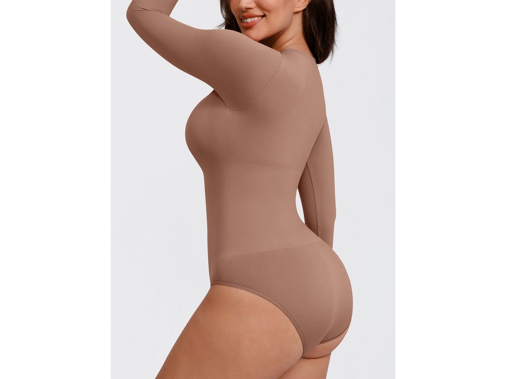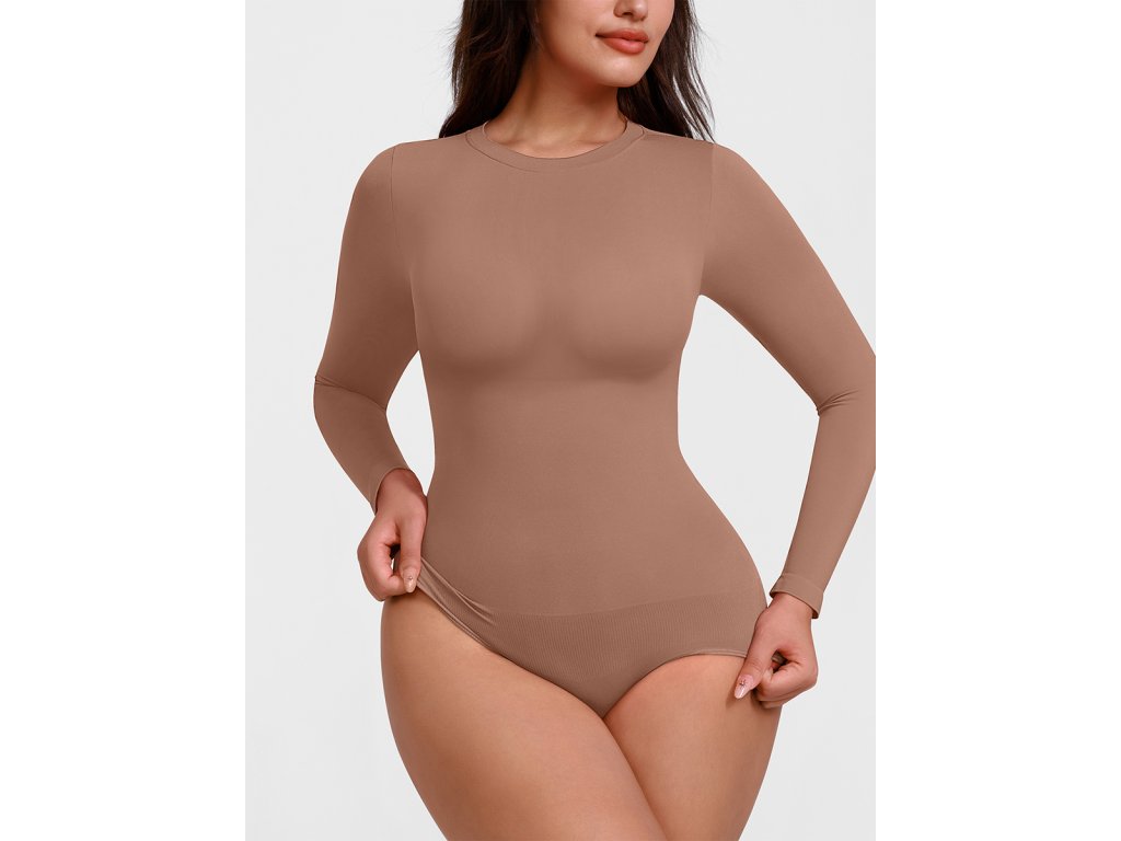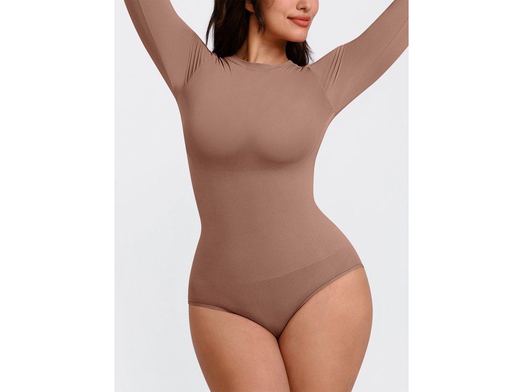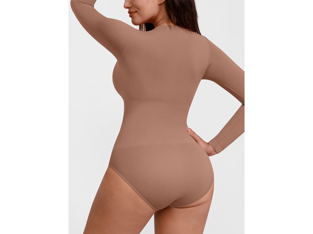 Tvarující body s dlouhým rukávem a klasickým kalhotkovým střihem, NUDE