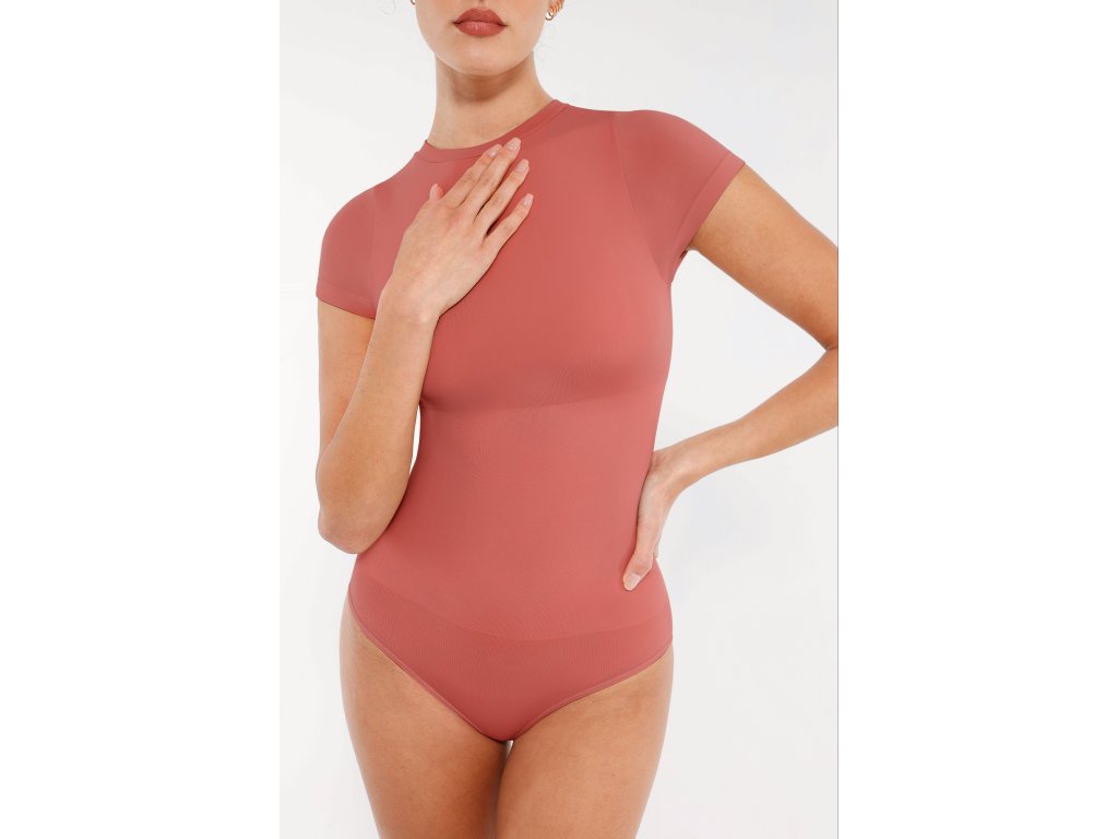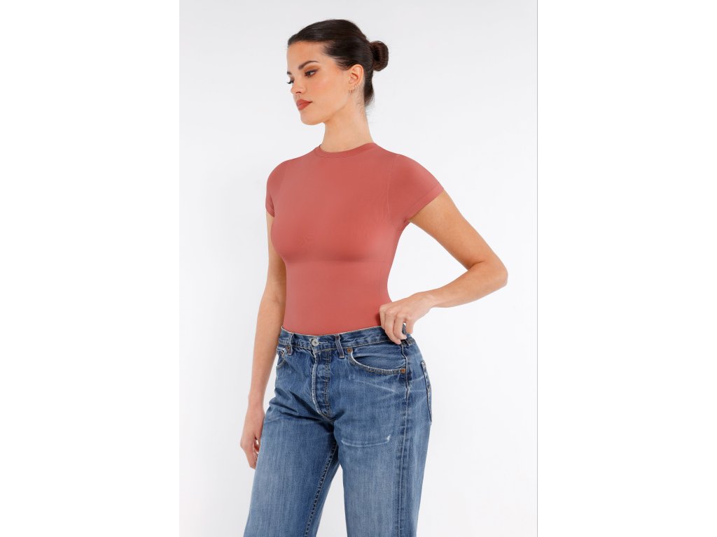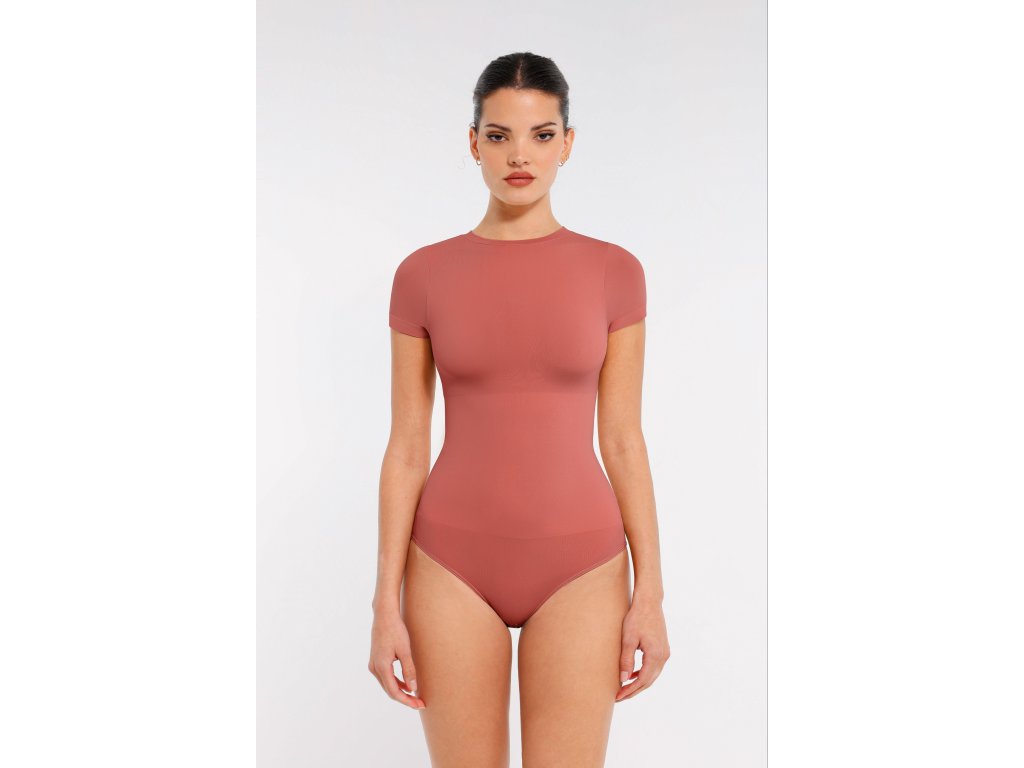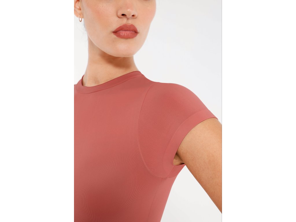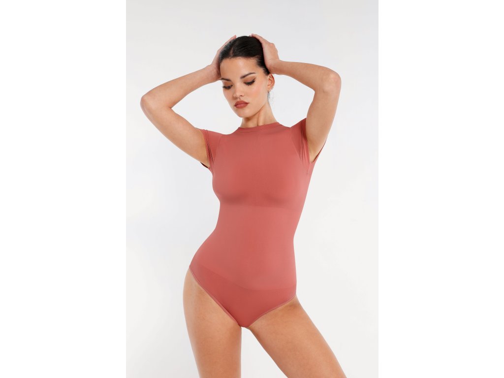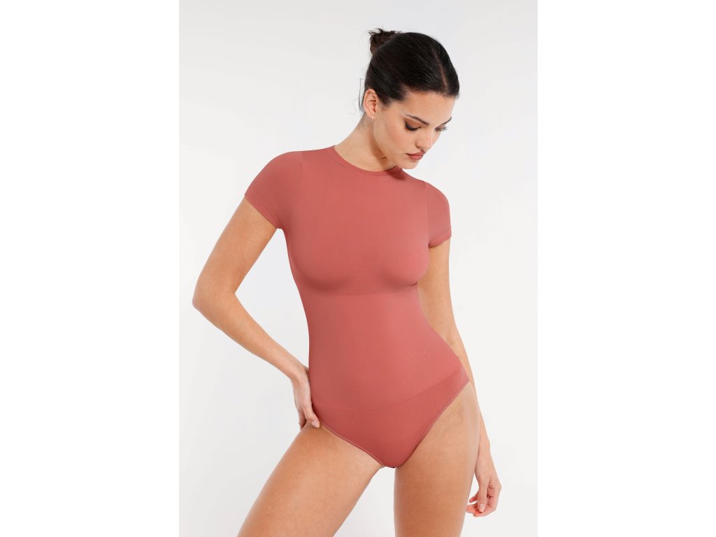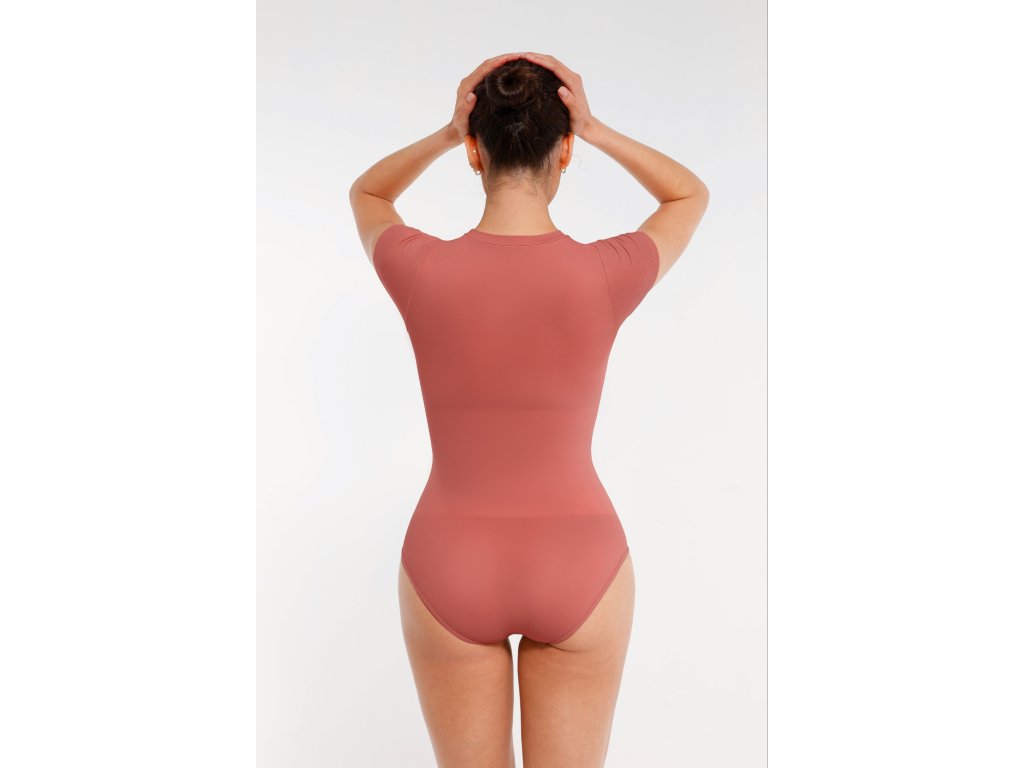 Tvarující body s krátkým rukávem a klasickým kalhotkovým střihem, HNĚDORŮŽOVÉ