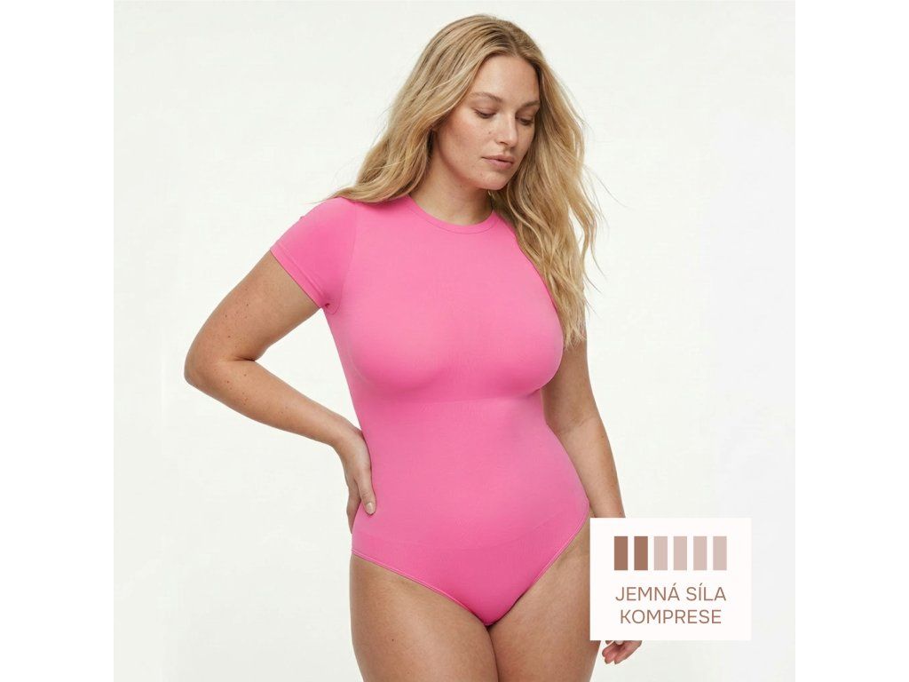 Tvarující body s krátkým rukávem a klasickým kalhotkovým střihem, RŮŽOVÉ