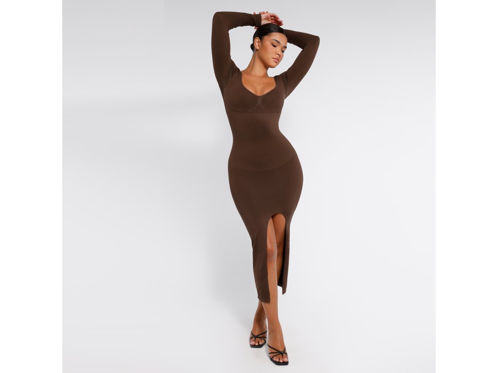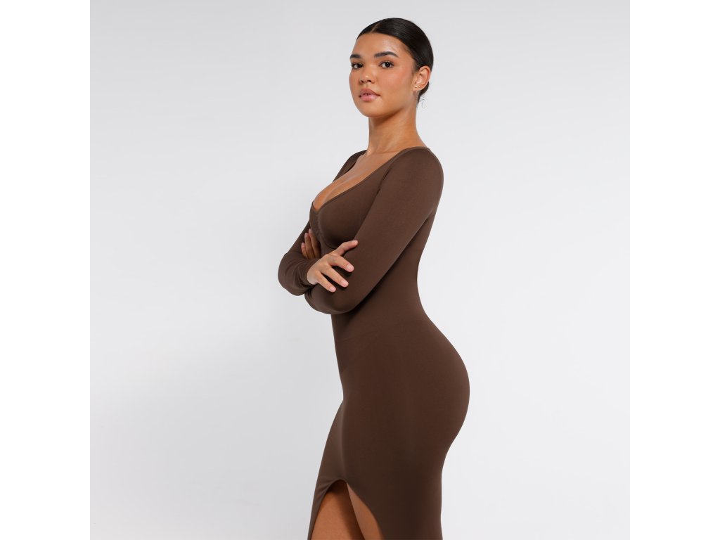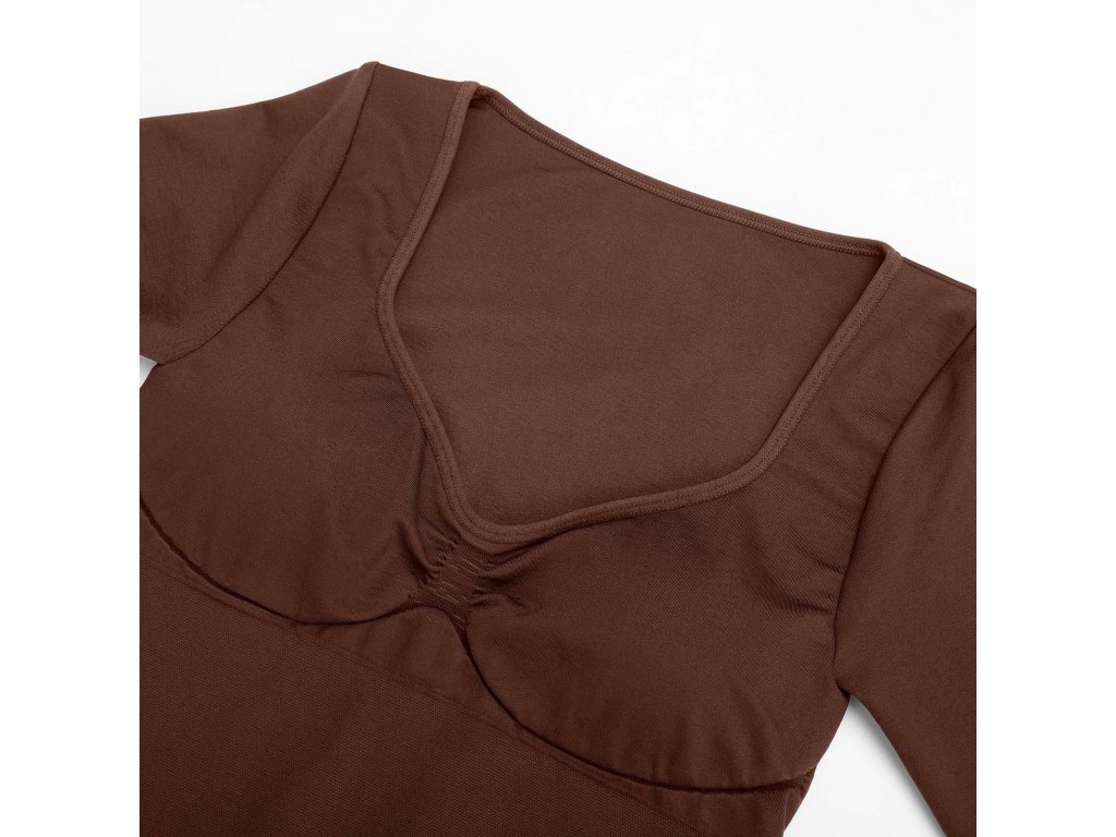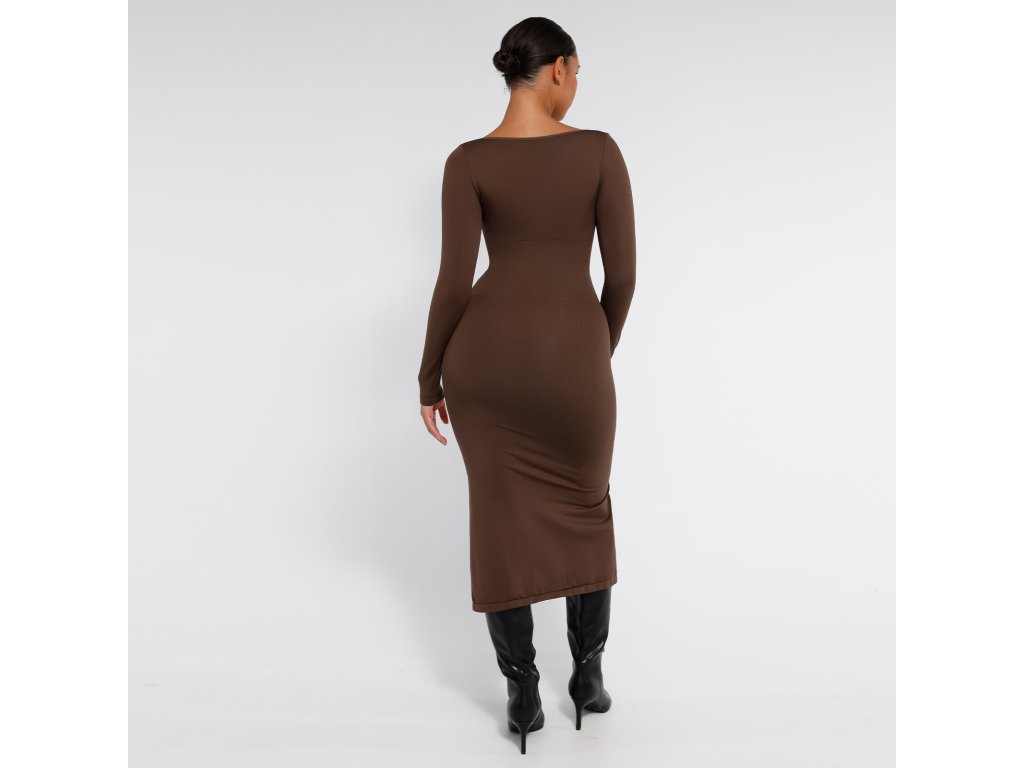 Tvarující šaty s dlouhým rukávem, HNĚDÉ