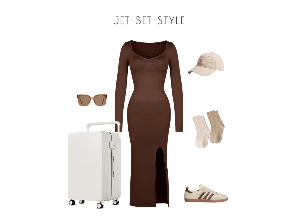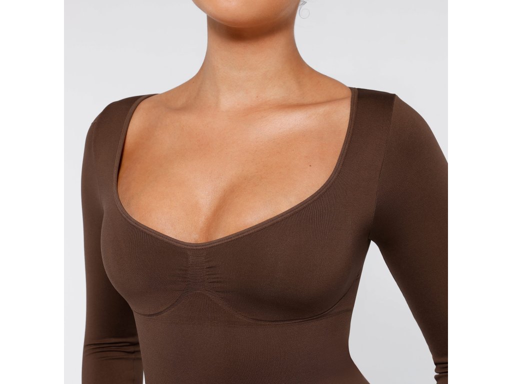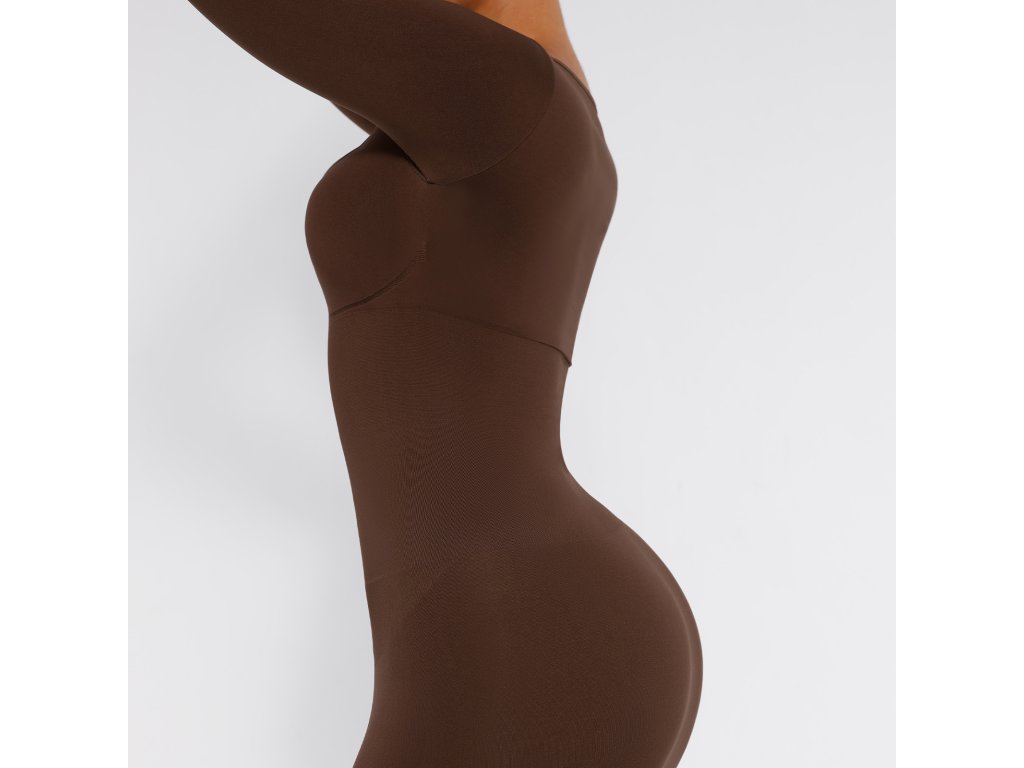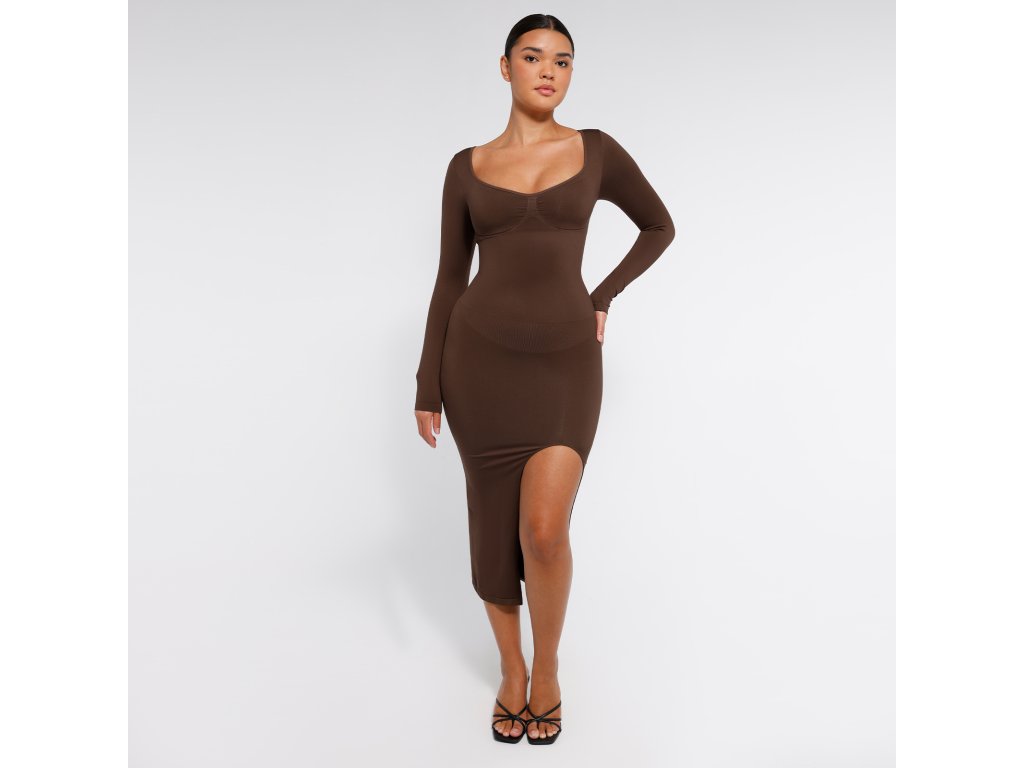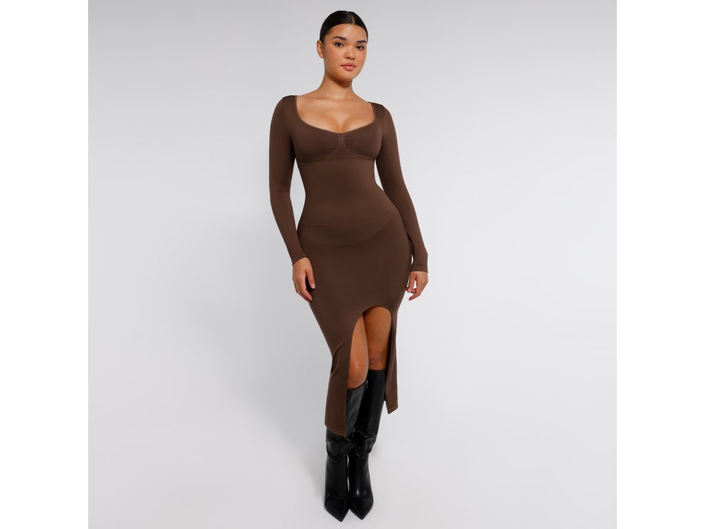 Tvarující šaty s dlouhým rukávem, HNĚDÉ