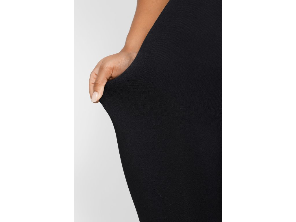 Formování postavy: zpevněná tkanina v oblasti břicha a pasu vytváří siluetu přesýpacích hodin.