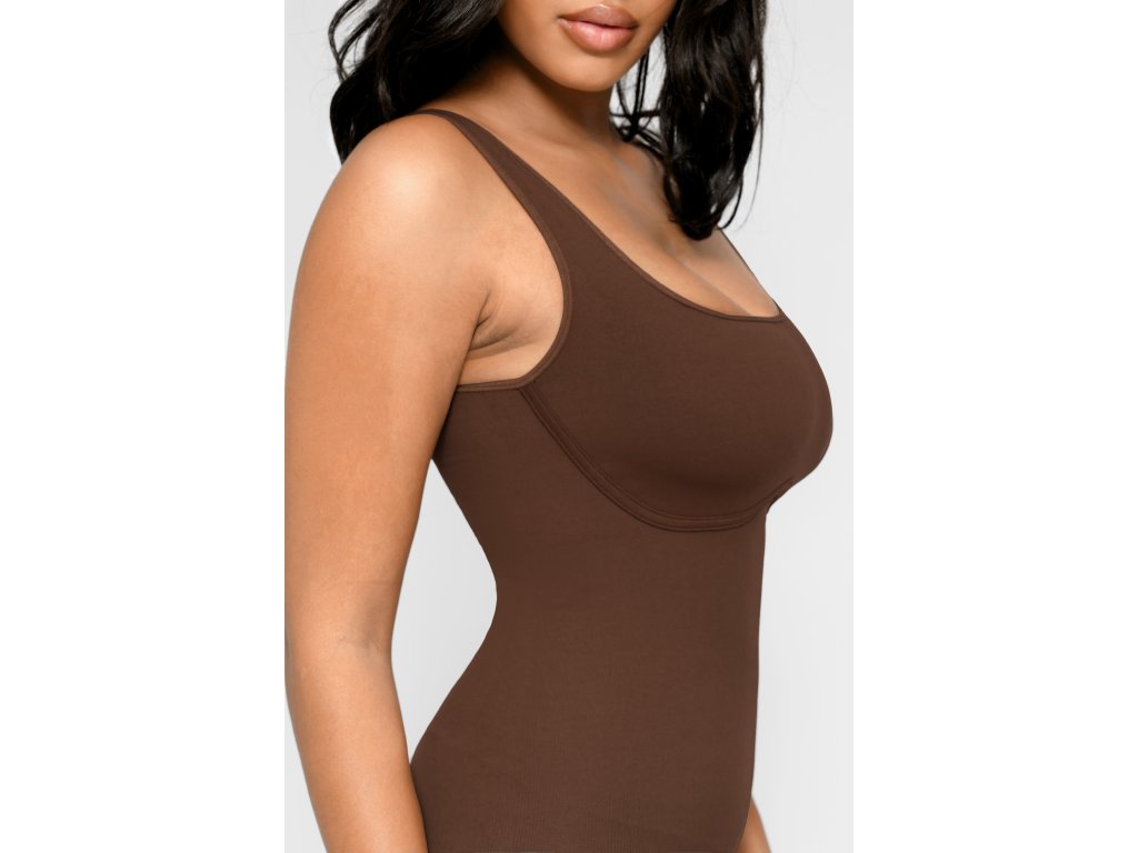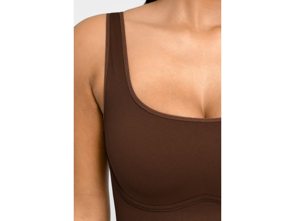 Čtvercový výstřih krásně zvýrazní dekolt, zatímco dvojitá vrstva tkaniny a speciální W-tvar poskytuje dokonalou podporu poprsí bez nutnosti podprsenky, takže se budete cítit pohodlně a sebejistě po celý den.